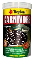 Fullporsjonert, proteinrikt fôr til stor kjøttetende fisk som spiser i bunnsonen, som f.eks. rokker, ål, kjøttetende Loricariidae, møll, slangehodefisk og andre kjøttetende arter. Den perfekt sammensatte sammensetningen påvirker smaken av fôret positivt. CARNIVORE, beriket med BETA-1,3/1,6-GLUCANE, styrker fiskens immunologiske system. Det høye innholdet av karbohydrater hindrer fettoppbygging rundt indre organer, noe som holder fisken i utmerket tilstand. Fôret er produsert ved hjelp av svært høy teknologi, som gjør det mulig å oppnå høy hydrostabilitet og utmerkede smaksverdier.