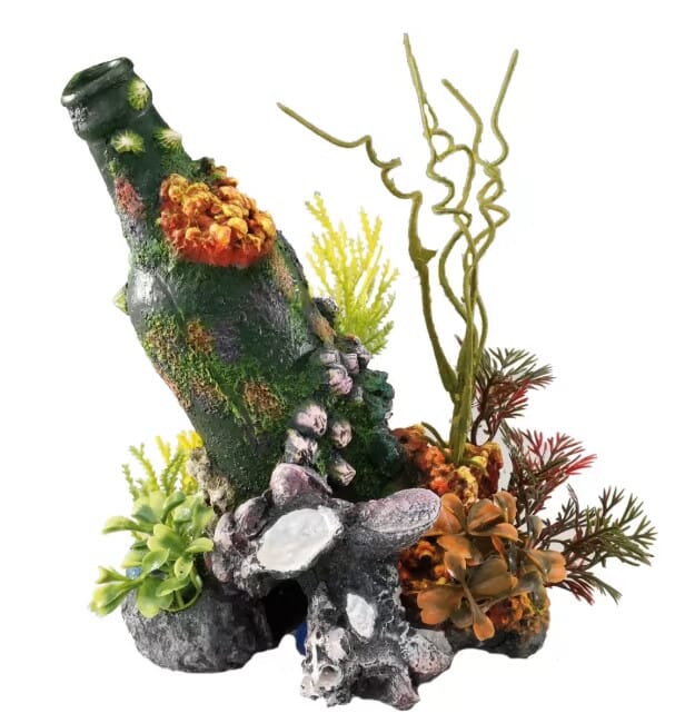 Akvarie Pynt Flaske m/luftestein 15x11,5x20cm