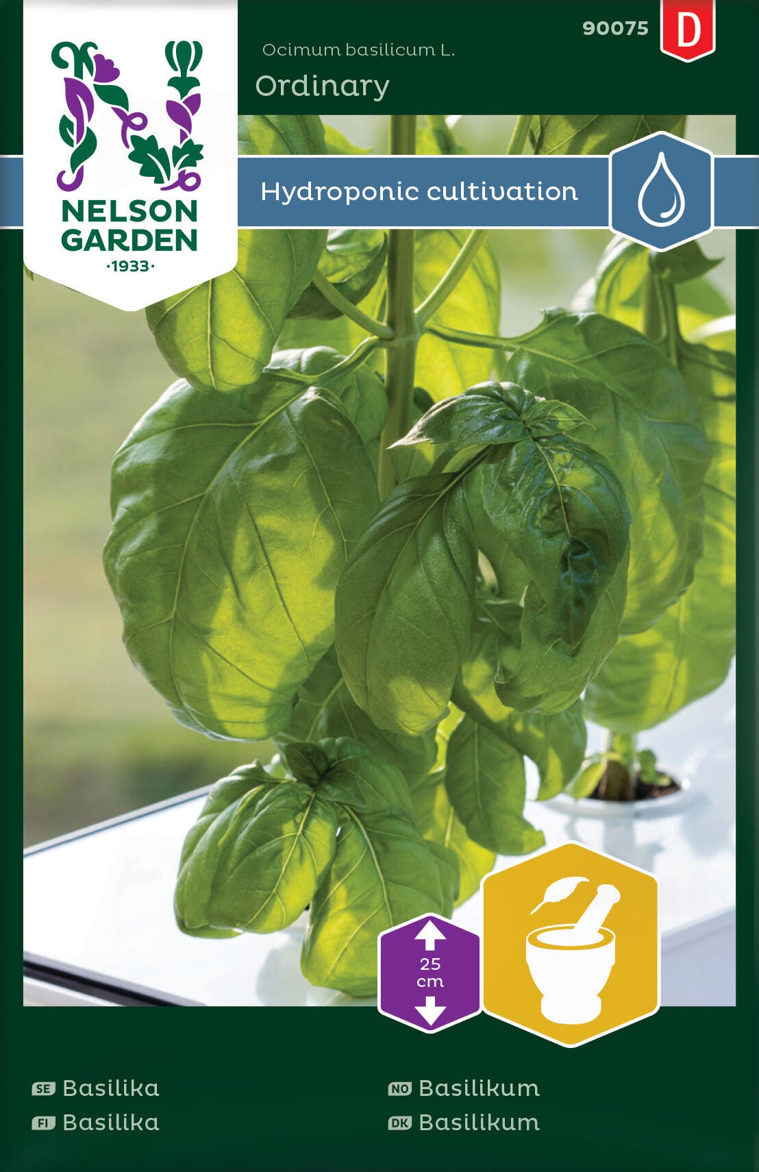 Meget god sort til hydroponisk dyrking. Gir rikelig avling av glatte, grønne blader med sterk og aromatisk duft. Kan også dyrkes i jord.