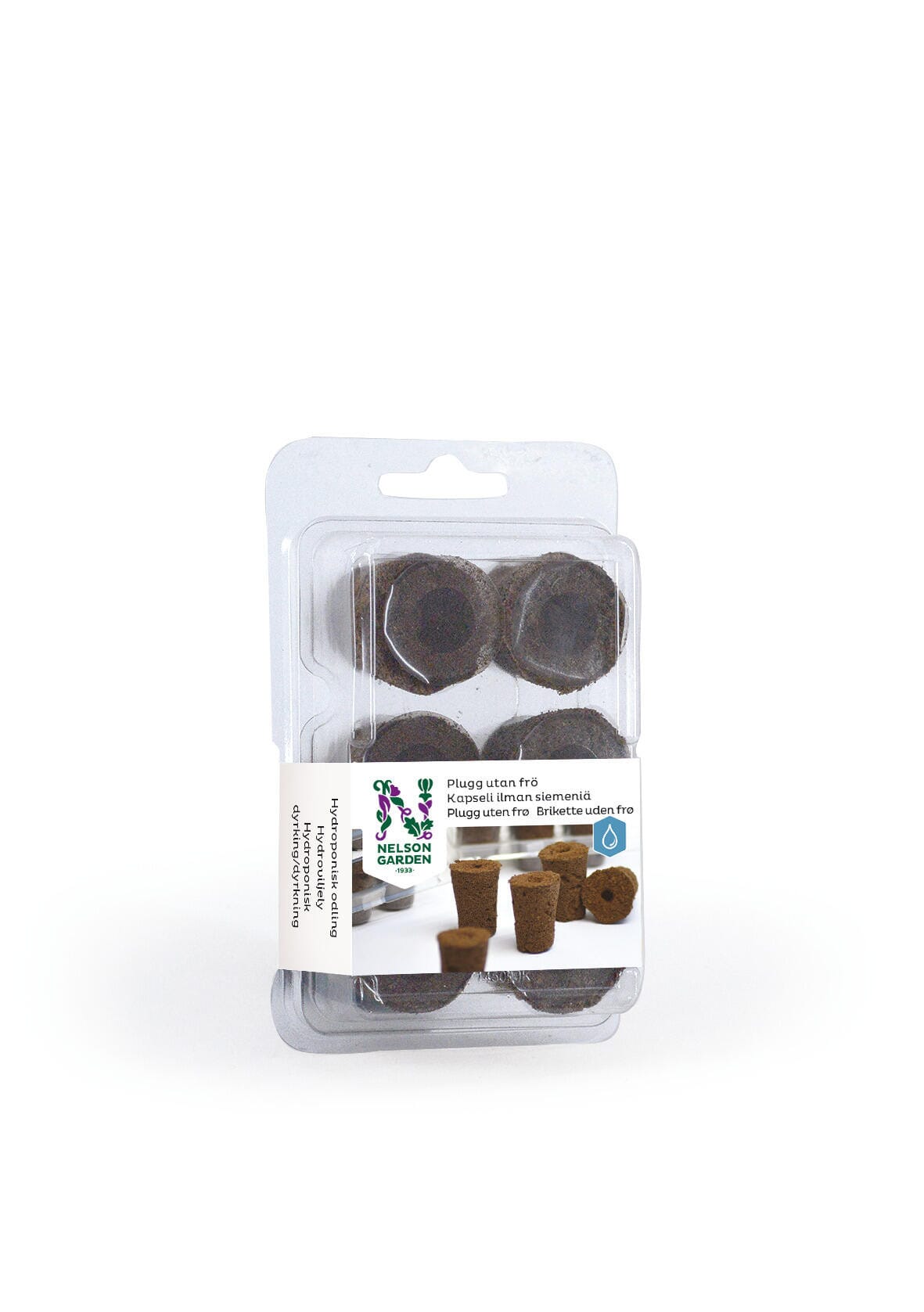 Planteplugger til hydroponisk dyrking. Av kokosfiber og torv pluss litt næring. Tilsett egne frø.