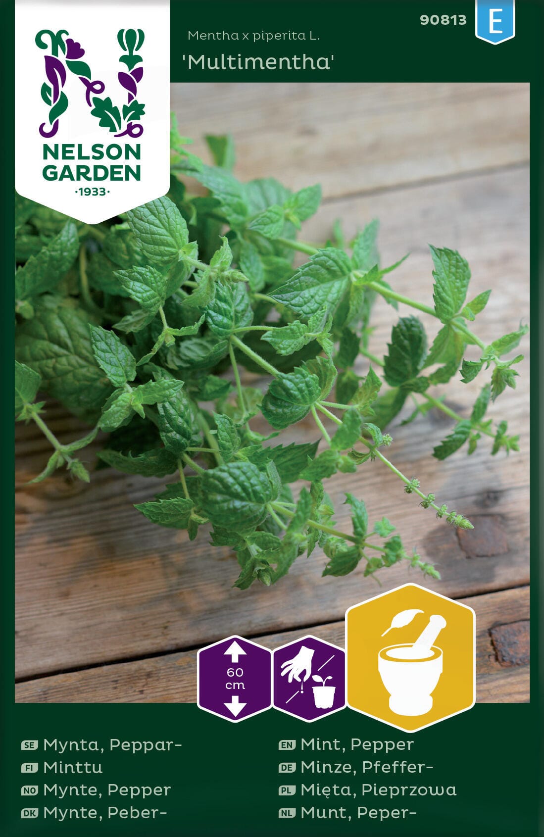 En lite krevende peppermynte med aromatiske blader som passer perfekt til sommerens sauser eller i en mild kopp te til høsten! Våren er en perfekt tid for å så peppermynten innendørs i potter for utplanting senere eller for å så direkte på vekstplassen. Ha tålmodighet! Det kan ta lang tid for peppermynte å spire, og deretter er det viktig å holde sådden fuktig. Høst blad for blad, det kommer til å vokse ut nye hele sesongen. Om sommeren går det bra å så utendørs direkte på vekstplassen. Om høsten passer det perfekt å så peppermynte i potter for plukking av blader hele vinteren. Planten kan da trenge plantebelysning. Du kan fortsette å så om vinteren også! Så inne i potter for plukking av blader eller kaldså utendørs, og det bør du helst gjøre i potte. Peppermynten spirer da på våren.