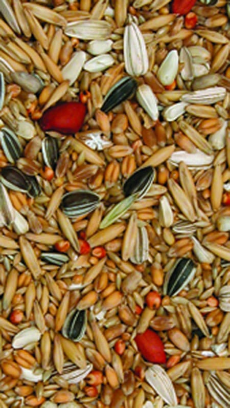 Sammansättning: Rent kanariefrö, Strimmigt solrosfrö, Vete, Havre, Safflorfrö, Gul hirs, Jordnötter skalade, Röd sorgum,