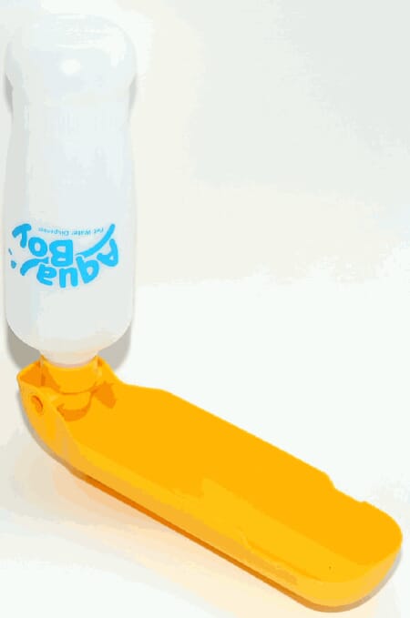 - Klem forsiktig på flasken til den ønskede vannmengden kommer ut i skålen, slik at hunden kan drikke av den.