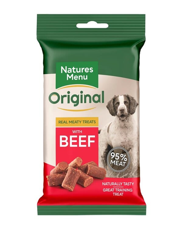 Natures Menu kjøttfulle godbiter er den ultimative treningsbelønningen. Laget med 95% ekte biff og svinekjøtt. En uimotståelig belønnings-godbit for hunder som ikke inneholder gluten.