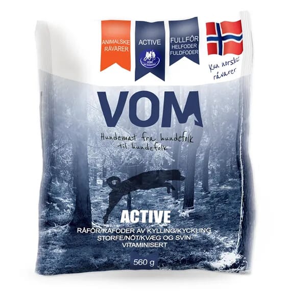 ACTIVE Fullfôr 560g kjøttboller. Svært allsidig bestselger som faller godt i smak hos de fleste hunder. Denne består av kjøtt, skinn og bein fra kylling, storfevom og innmat som lever, nyrer, lunger og hjerte fra svin og storfe. Passer til voksne hunder.
