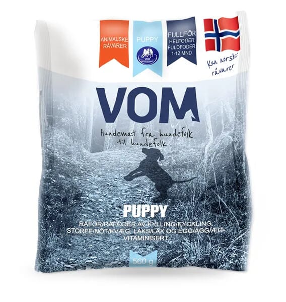 PUPPY Fullfôr 560g kjøttboller. Valpen er fra naturens side tilpasset en kjøttbasert diett. PUPPY består av kjøtt, skinn og bein fra kylling, storfevom, laks, kokte egg og storfelever, i tillegg tilsettes vitamin- og mineralpremix. Blandingen gir valpen en naturlig og god start på et langt og sunt hundeliv