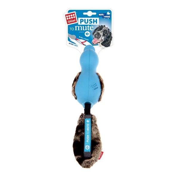 Push to Mute hundeleke laget av myk og slitesterk gummi.