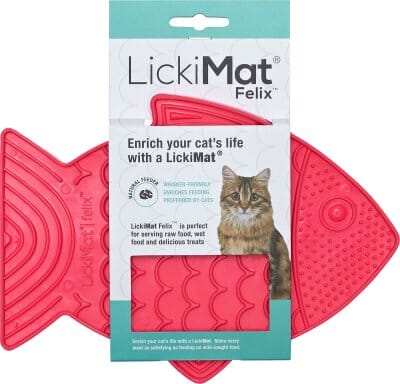 LickiMat Felix för katter med sin mönstrade yta är perfekt för att lugna ner ätandet och bjuda på godsaker. Använd med mjukt foder så som mjukt kattgodis, blötfoder, råfoder, fisk och yoghurt för ett långvarigt godis.