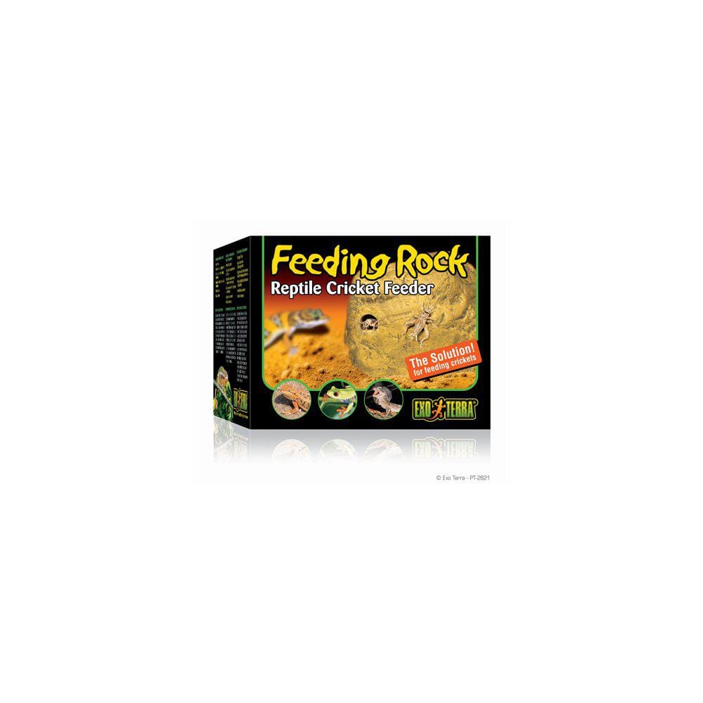 Exo Terra Feeding Rock er et hjelpemiddel som er enkelt å bruke når du skal fòre insekter til dine reptiler eller amfibier. Feeding Rock reduserer forbruket av tilleggsnæring gitt i pulverform da overflødig pulver blir liggende tilbake i Feeding Rock og kan dermed brukes om igjen. Ved å bruke Exo Terra Feeding Rock - Reptile Cricket Feeder vil du også unngå at overflødig vitamintilskudd blir liggende i bunnmaterialet hvor det kan gi grobunn for skadelige bakterier, spesielt da gjerne i terrarium med fuktig miljø.