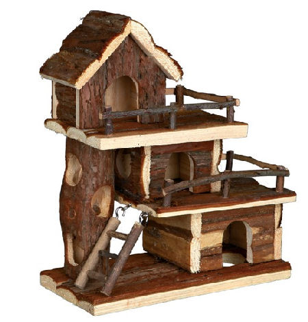 med tunnel og stige for oppheng åpning i bunnplate for enkel rengjøring barkvedVi legger mye vekt på helsen til kjæledyret ditt. Av denne grunn er artiklene våre laget av bartre uten harpikskanaler, da harpiks kan være giftig for noen dyr. Treverket vi bruker har ikke harpiks og tørkes også grundig før bearbeiding. Limet vi bruker er også ikke giftig for dyr.